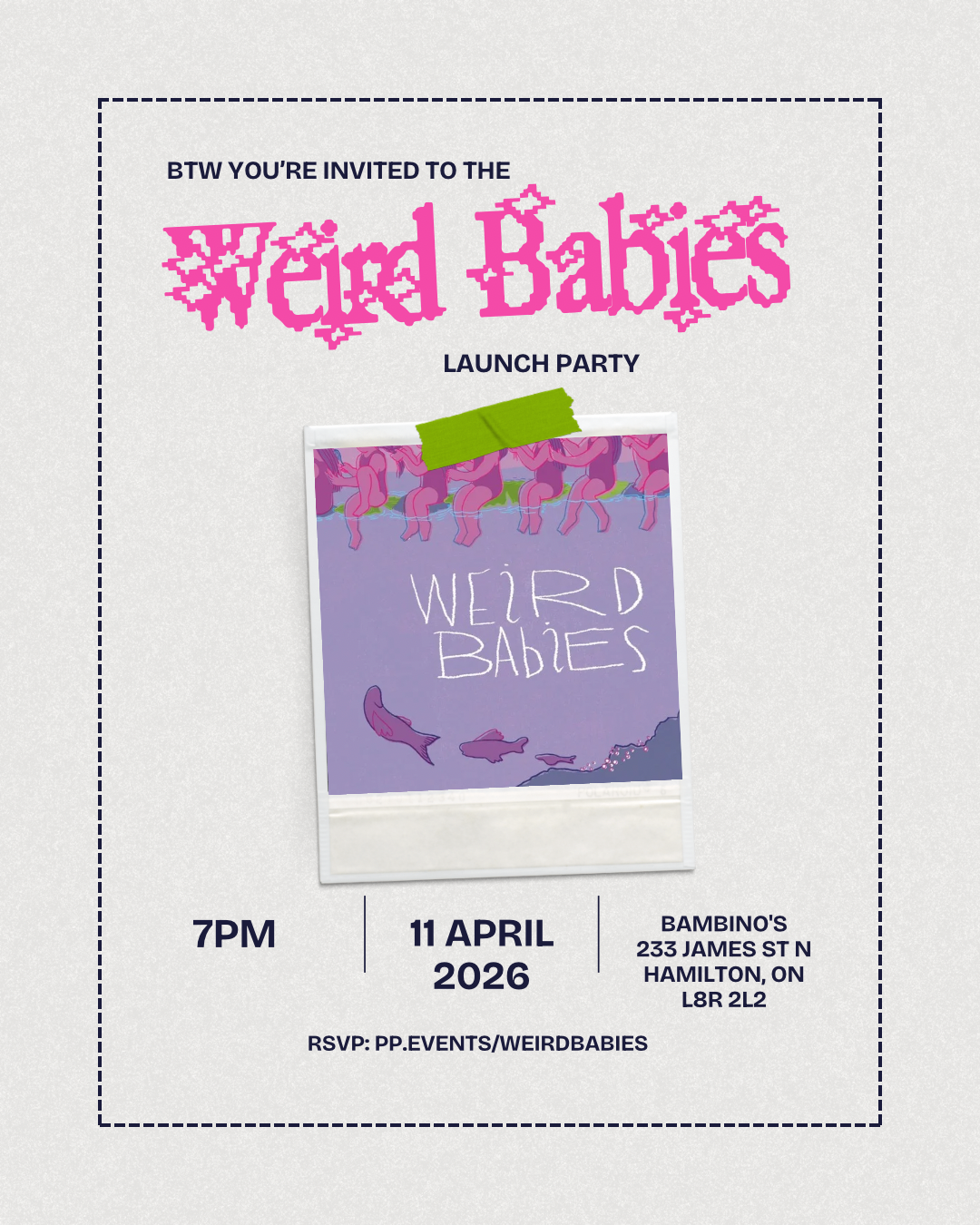 Join me in celebrating the launch (birth?!) of WEIRD BABIES, my short story collection published by The Porcupine's Quill. Guest readings! Cake! Cocktails AND mocktails! Plus, take a gander at the art of Marlee Jennings, Weird Babies cover designer extraordinaire.